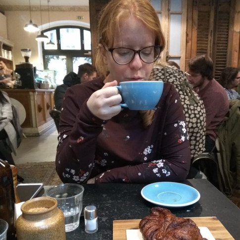 קראתי הרבה המלצות על בית הקפה הזה ובכולן היה כתוב שחשוב מאד להגיע מוקדם בבוקר כי אחרת אין מקום ישיבה והמאפים השווים נגמרים. התייצבנו במקום בחמישה לתשע ובתשע אפס אפס בית הקפה נפתח. אנחנו אוהבות את הדיוק הגרמני. הוא מחמם לנו את הלב אחרי שנה באיטליה שבה אי אפשר לסמוך על כלום חוץ מהידיעה כי הרכבת תאחר, המשרדים הממשלתיים לא יעבדו והמסעדות יפתחו כשבא להן). התיישבנו בשולחן אטרקטיבי ובאמת, אחרי עשר דקות המקום היה מלא לחלוטין. האוכל היה שמיימי ומופלא וטעים. לא זול, אבל תענוג צרוף. גם כאן אתן לתמונות לדבר.
